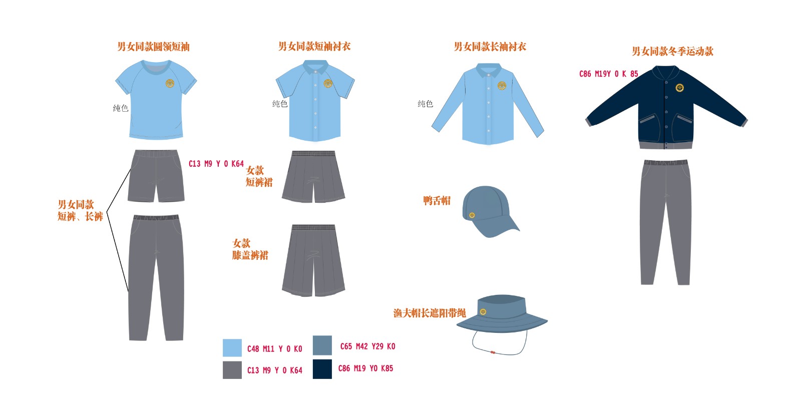 请从我司样板展厅或每季画册中选择适合贵校的款式。